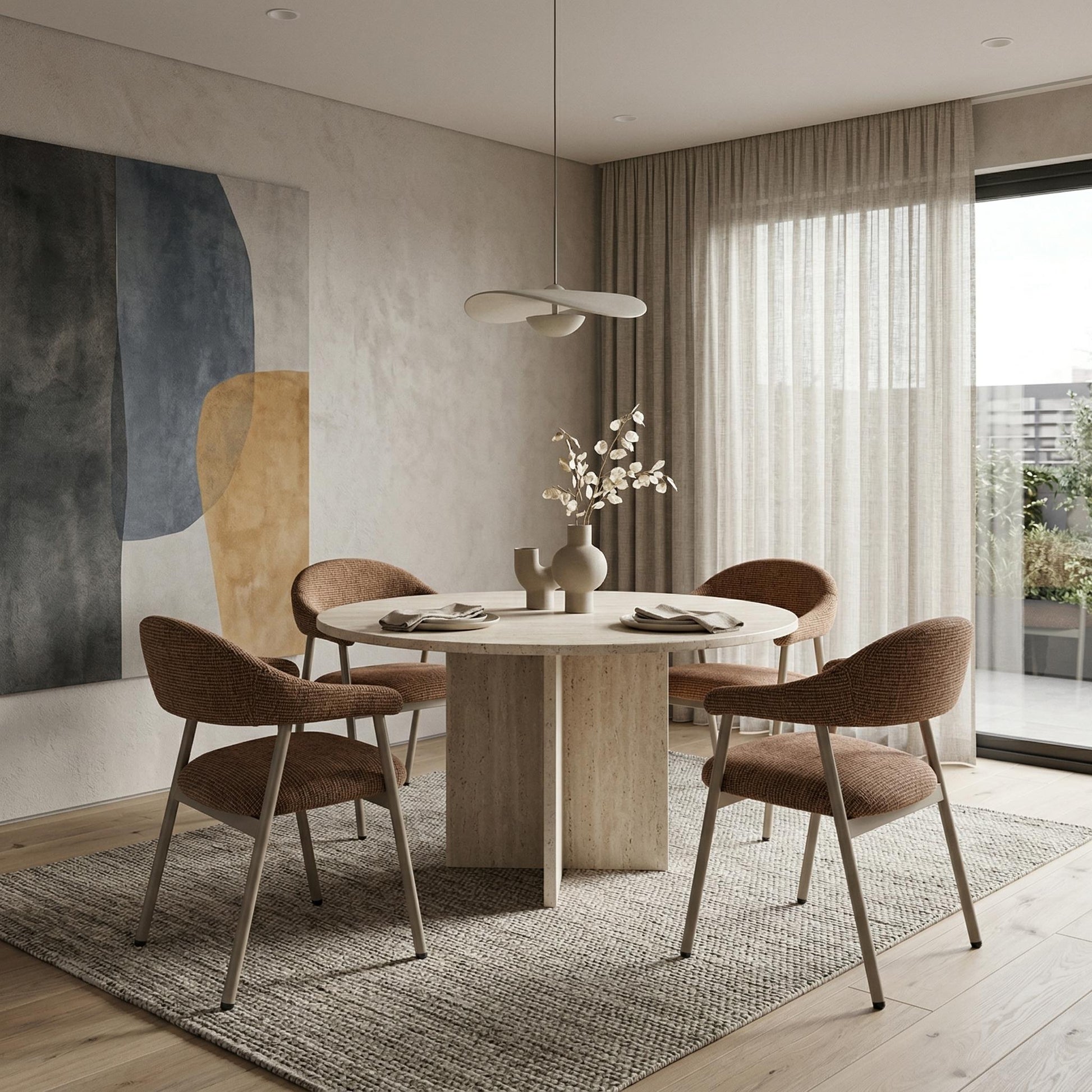 A perfect balance of comfort and style, this dining chair features a soft upholstered seat and a supportive backrest. Its clean silhouette makes it a versatile addition to any modern living space.